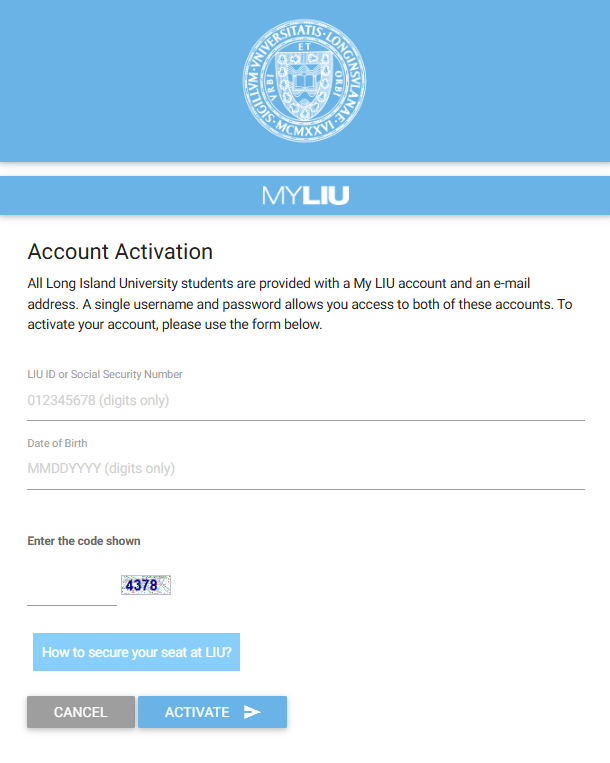 Welcome to LIU! Now that your account has been created it’s time to activate it so you can login. Current students who have had their account passwords reset by IT will also need to activate their accounts after the reset.
