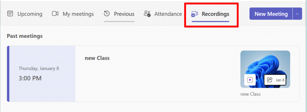 By Default, any meetings you record are stored in your OneDrive for 60 days before soft deletion (see information at bottom). There are two ways you can access recordings: