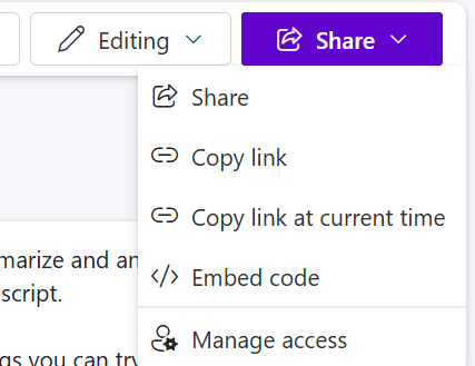 After your recordings are saved, you can share them with your class or fellow colleagues. If you have not already located your recordings, please refer to the “Locating Teams Recordings” section before following this.
